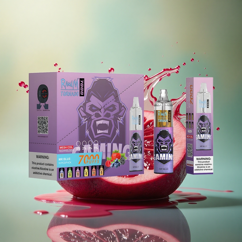 RandM Fumot Tornado 7000 Puffs Dr. Blå 14 ML E-væske 850 mAh Luftjusterbar